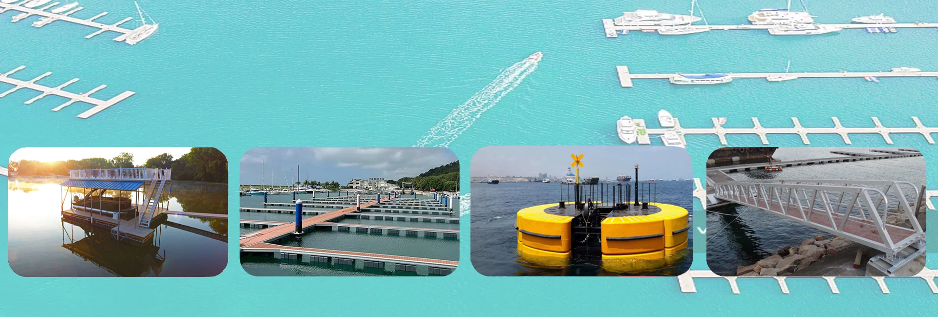 Pontón flotante de polietileno fabricado en China para construcción de Marina